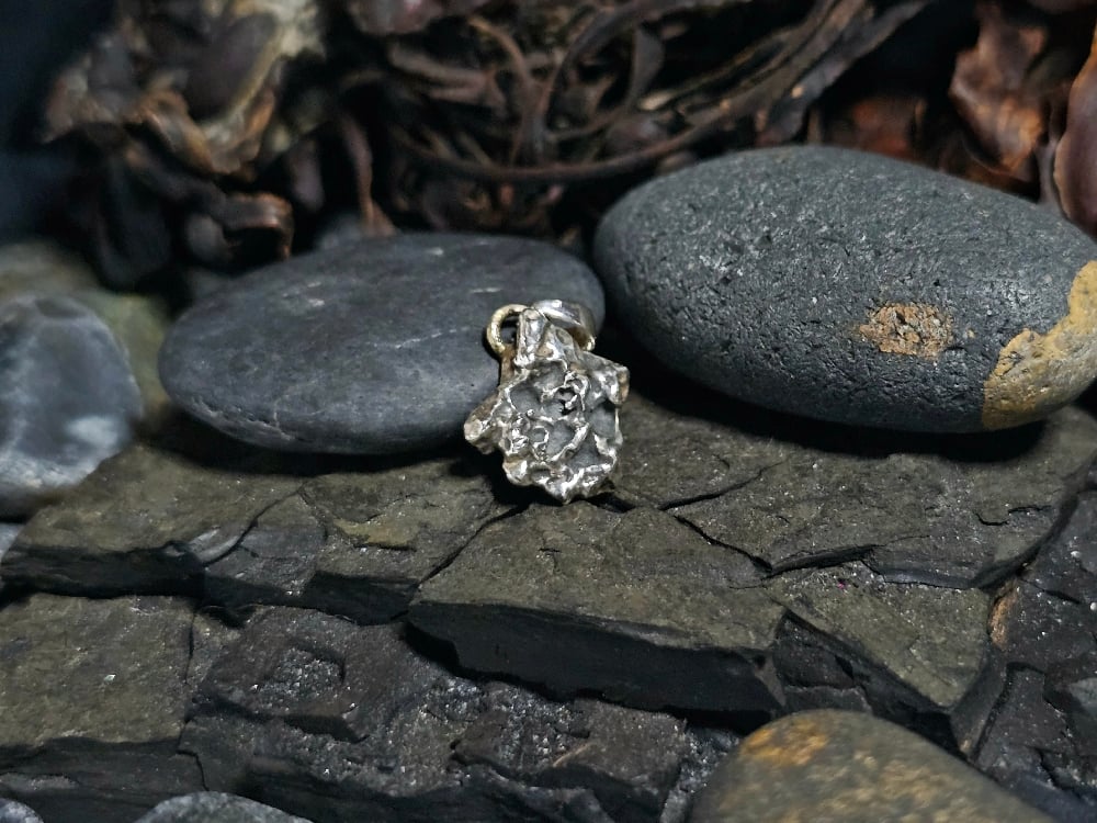 These hand cast pendants capture a miniature version of a seaside rock pool with crevices, lumps bumps and a rocky appearance.