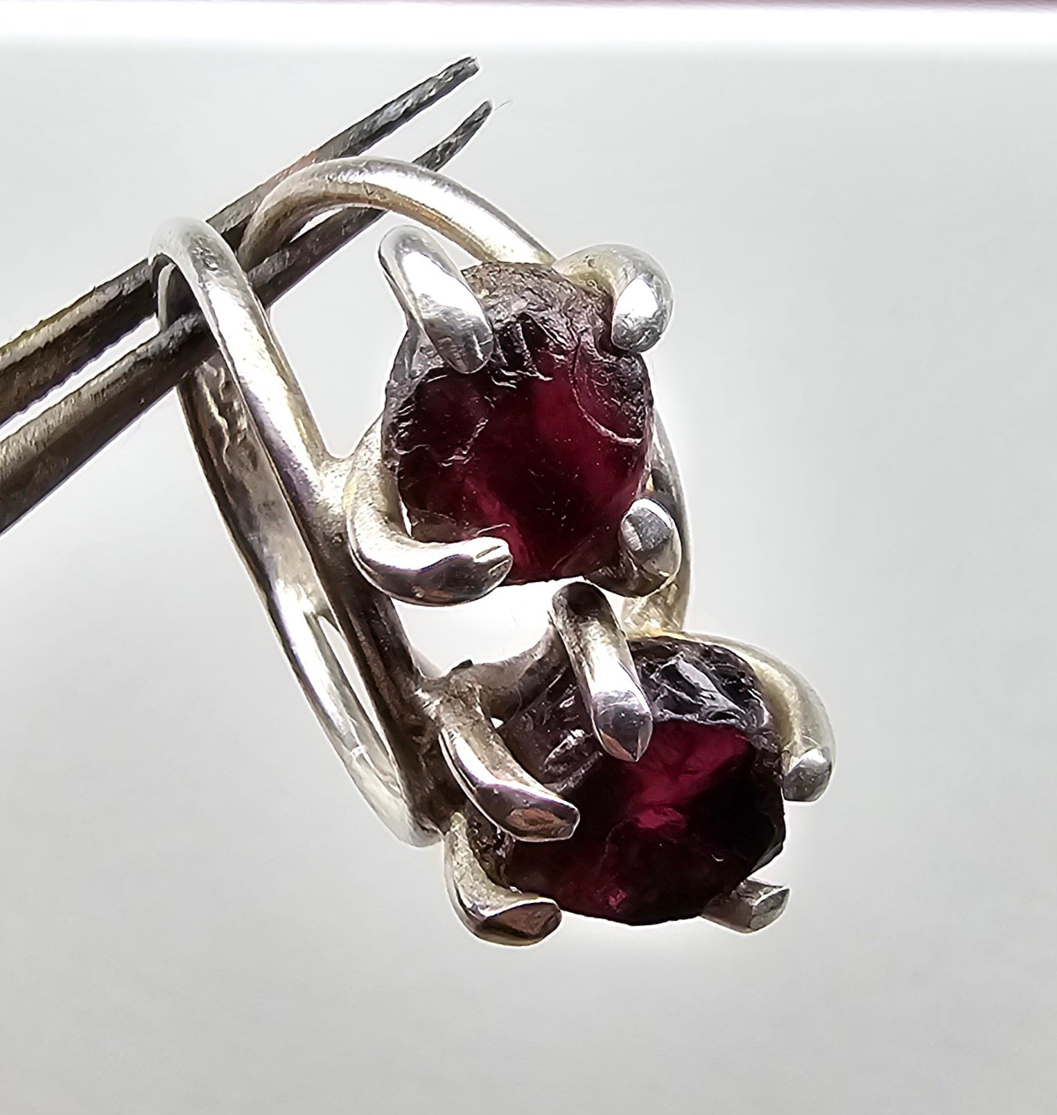 Set on split rings to allow as much light as possible to permeate the stones as they can transform from red-black to brighter than back lit stained glass.